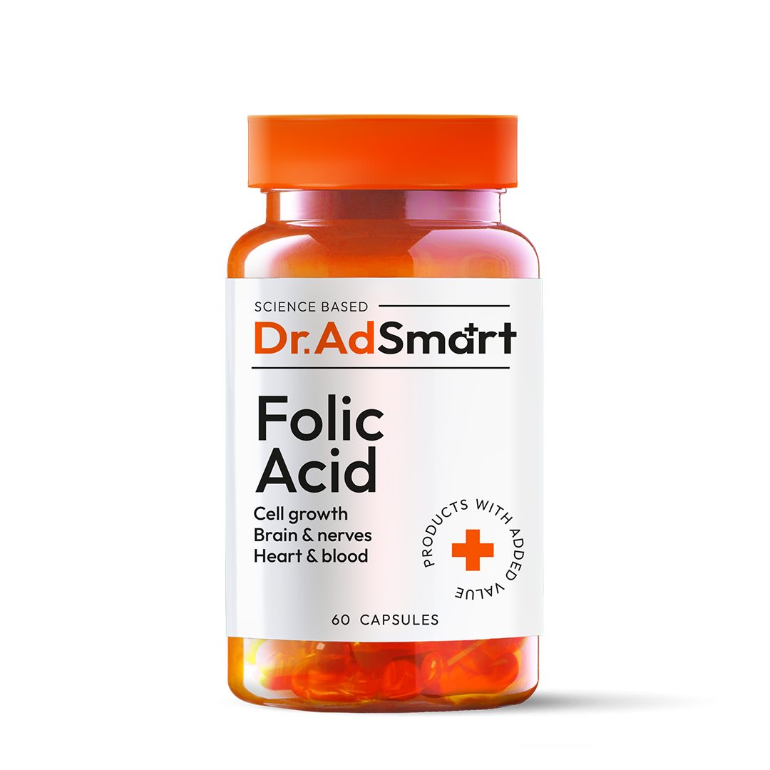 Maisto papildas Dr.AD Smart Folic Acid skirtas papildyti mitybą folio rūgštimi. Papildomai vartojant folio rūgšties, nėščiosios kraujo eritrocituose daugėja folatų. Mažas folatų kiekis nėščiosios kraujo eritrocituose yra besivystančio vaisiaus nervinio vamzdelio defektų rizikos veiksnys: